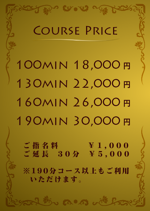 ※ご希望のお客様には、190分コース以上も承ります。揉みほぐしセットコースなども行っております。